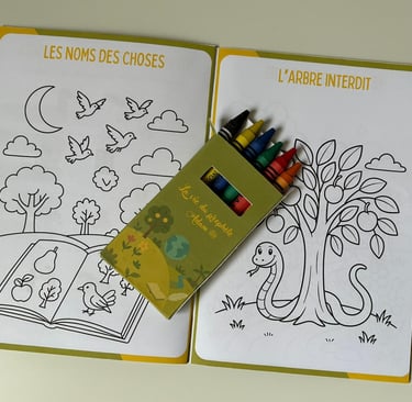 🎨 Crayons de cire inclus pour colorier les pages prévues dans le livret